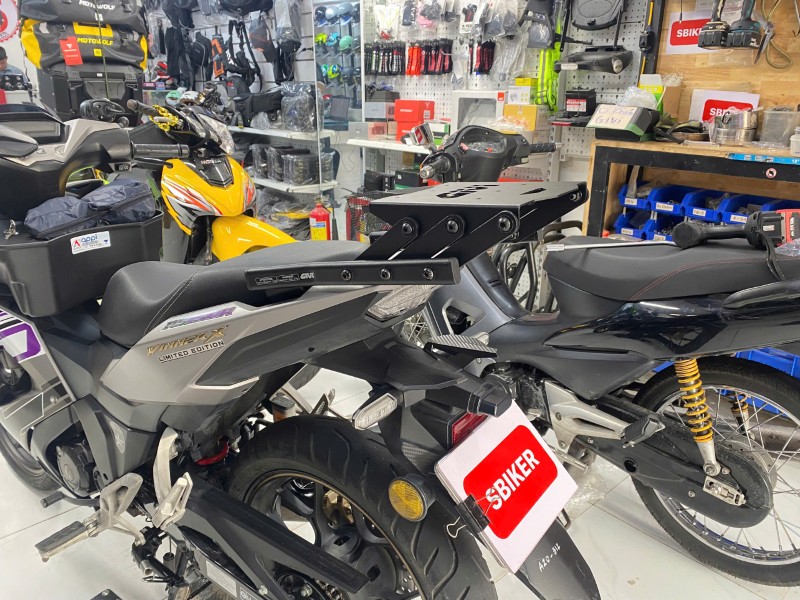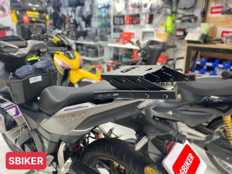 Baga MF Givi được thiết kế chuẩn lỗ ốc theo Winner V3, lắp đặt đúng vị trí zin của xe, không cần chế cháo khung sườn. Khi lắp hoàn chỉnh, baga ôm theo đuôi xe, không lệch form và không phá dáng tổng thể thể thao của Winner V3.